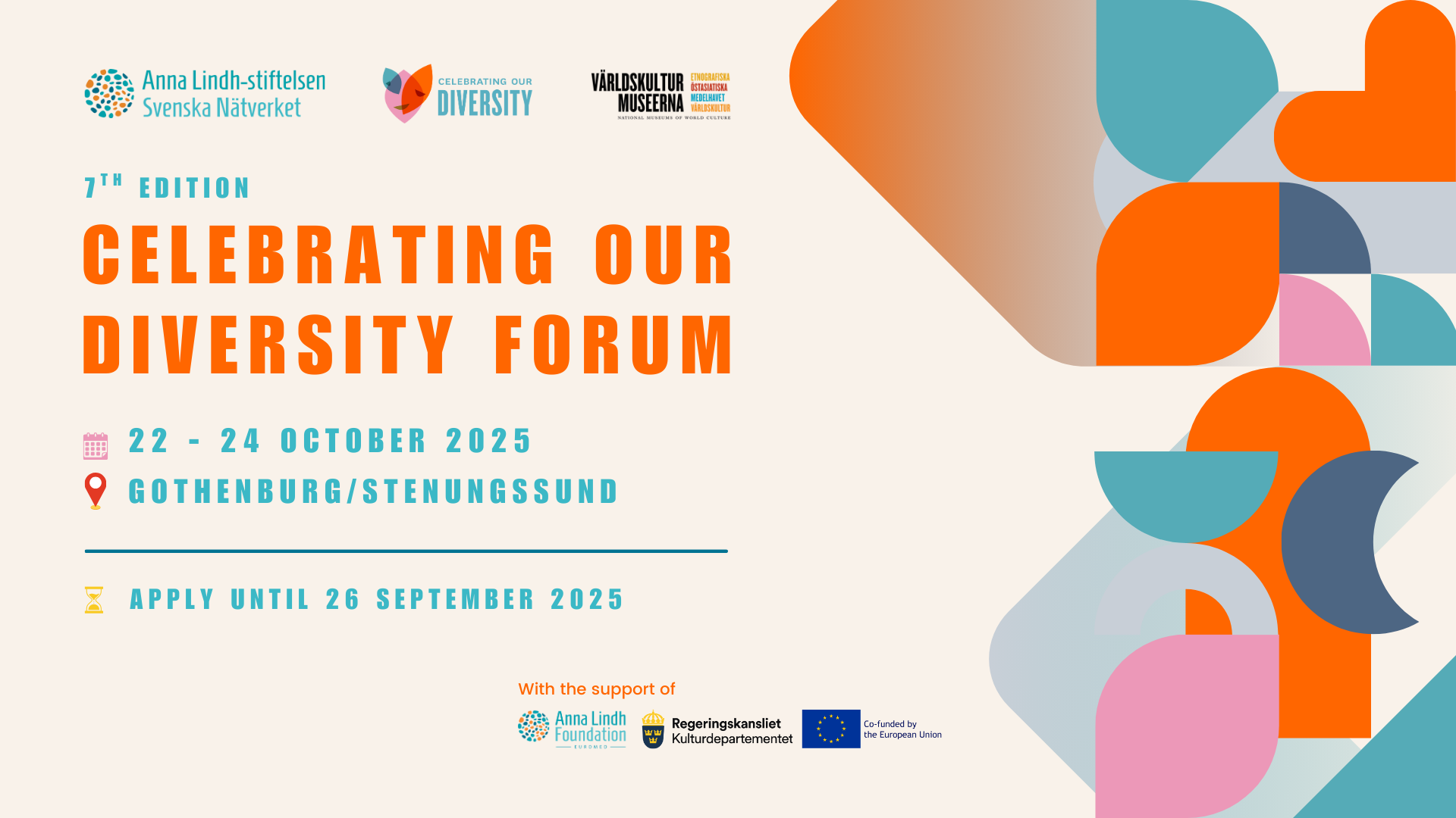 This Forum is organised by the ALF Swedish network coordinator, the National Museums of World Culture with the support of the Anna Lindh Foundation, European Commission, the Swedish Ministry of Culture.